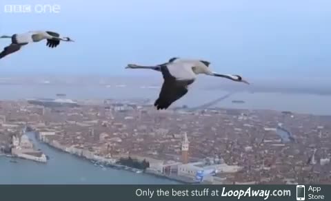 Cranes flying over Venice