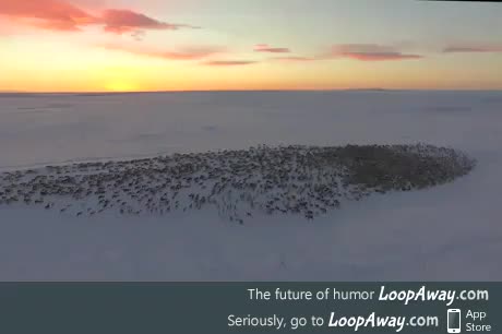 A herd of reindeer moving in the winter