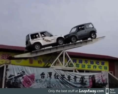 Cars playing seesaw
