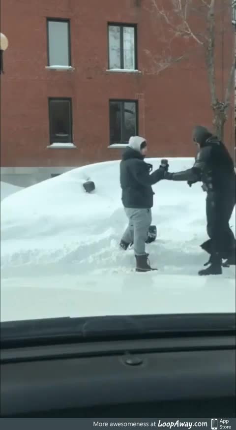 Dude hands out coffee and helps people shovel snow dressed as Batman