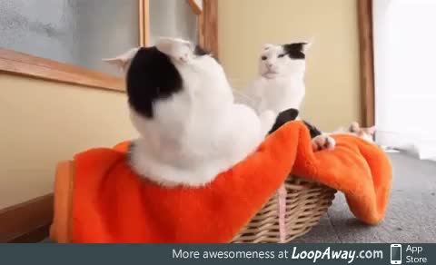 Cat looking skeptically at its reflection