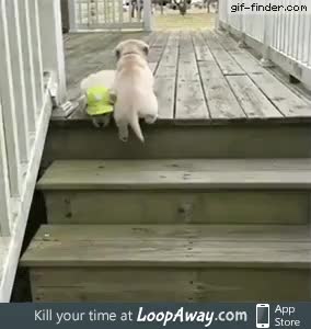Puppies learning to master the stairs