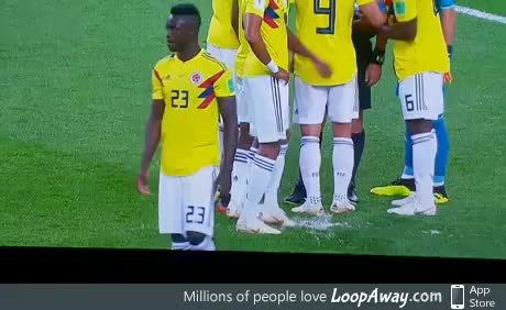 Colombian players trying to sabotage the penalty spot before Harry Kane penalty