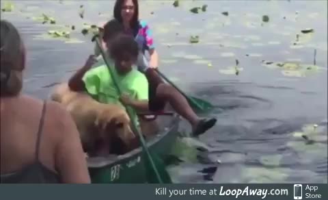 Good boy gets out of the canoe