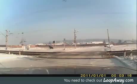 Man sees train approaching and bails out off his car (and he didn't have to)