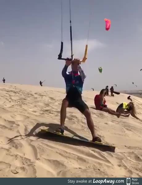 Kiteboarder launching off the beach