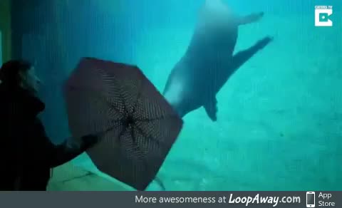 Spinning umbrella and sea lion