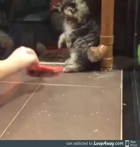 Cat scared by a broom